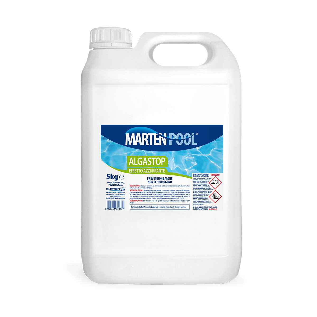 Algastop antialghe è ideale per prevenire ed eliminare la fastidiosa formazione delle alghe in piscina. Non schiumogeno alle normali dosi d’impiego.
