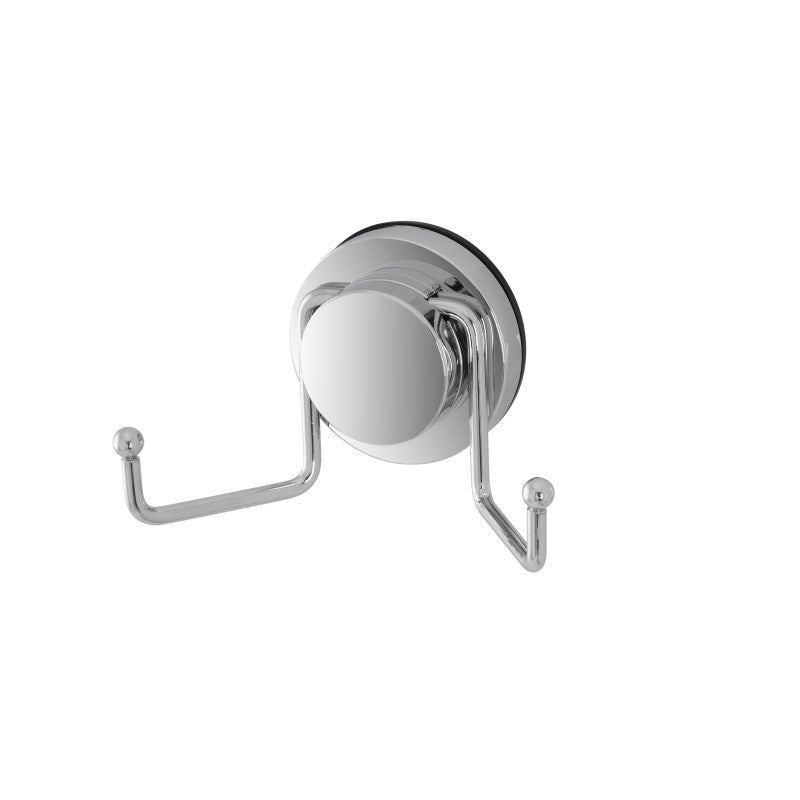Appendino da bagno con doppio gancio di sostegno per abiti, asciugamani o salviette. Realizzato in acciaio con finitura cromo lucida.