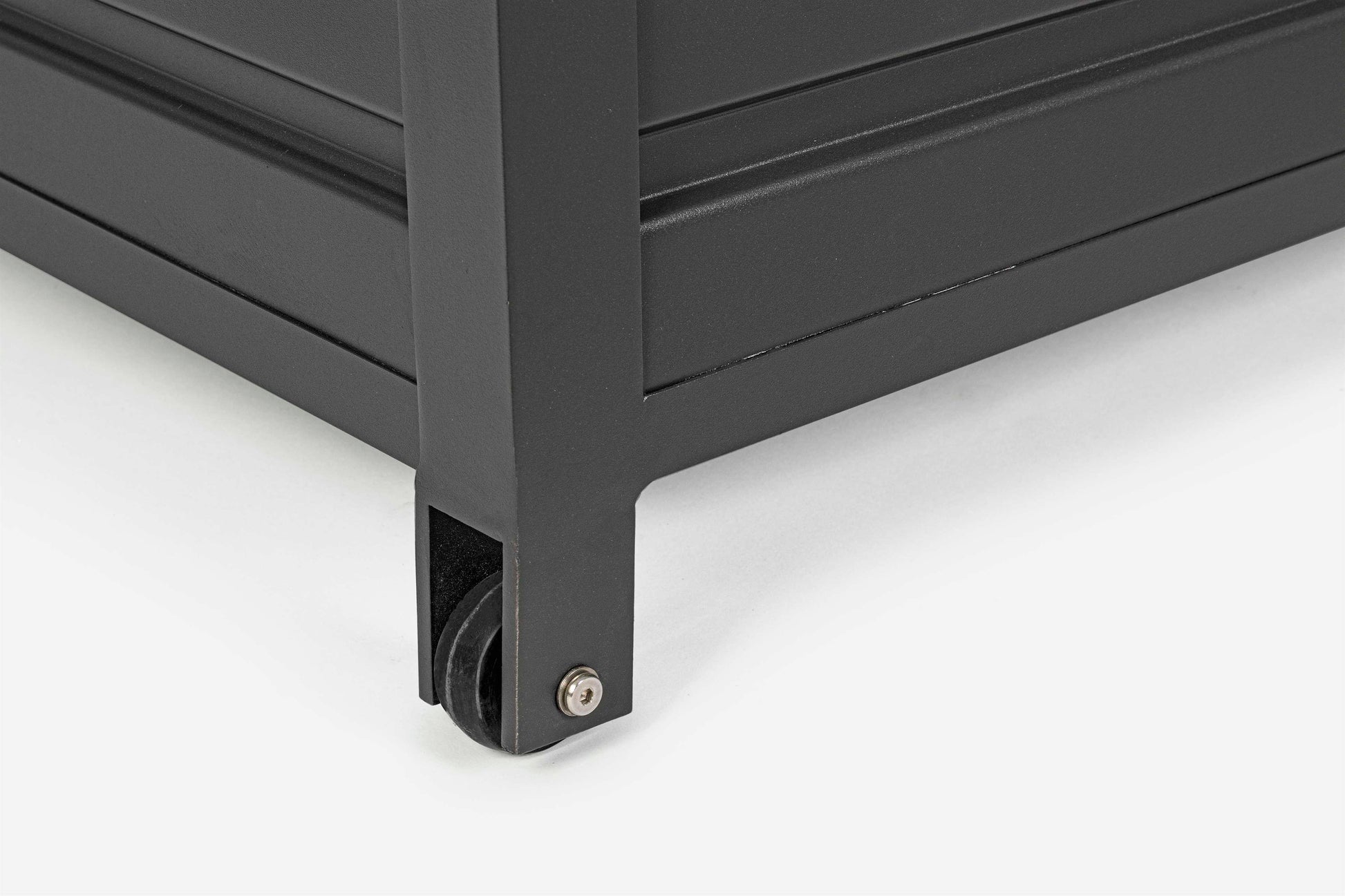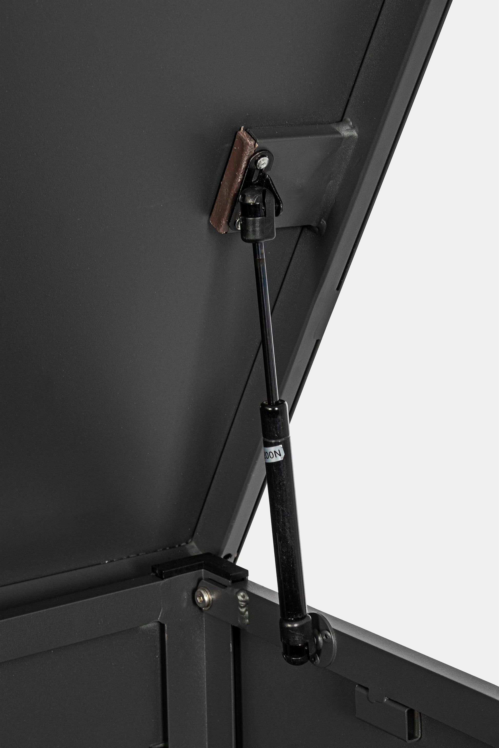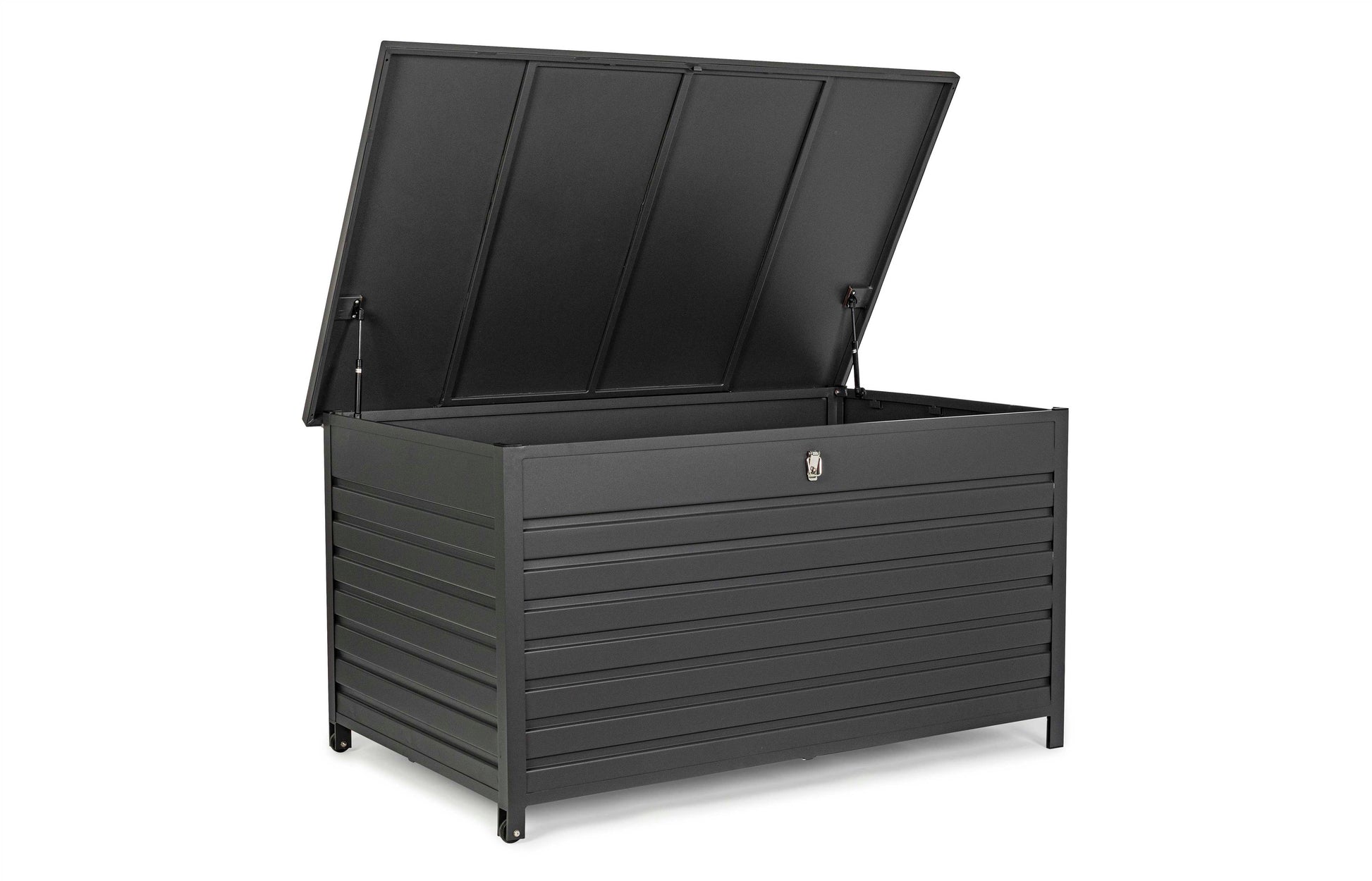 ALLUMINIO VERNICIATO A POLVERE (POLIESTERE). RUOTE IN PLASTICA, MANIGLIA IN ALLUMINIO. APERTURA FACILITATA CON DUE PISTONI A GAS. DA ASSEMBLARE.