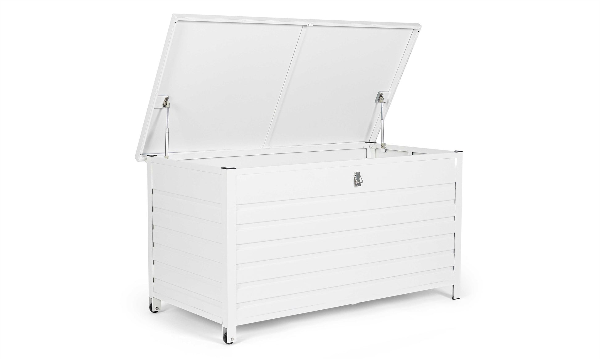 ALLUMINIO VERNICIATO A POLVERE (POLIESTERE). RUOTE IN PLASTICA, MANIGLIA IN ALLUMINIO. APERTURA FACILITATA CON DUE PISTONI A GAS. DA ASSEMBLARE.
