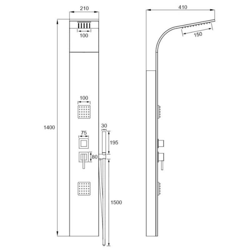 - Dimensioni: (LxPxH) 21 cm x 42 cm x 140 cm