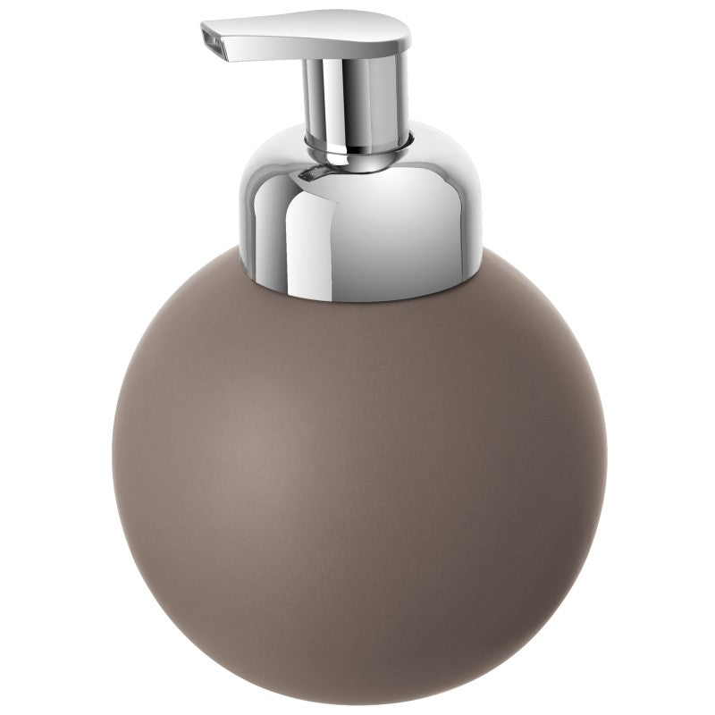 Dispenser sapone liquido da bagno tipologia d'appoggio realizzato in ceramica di colore tortora.