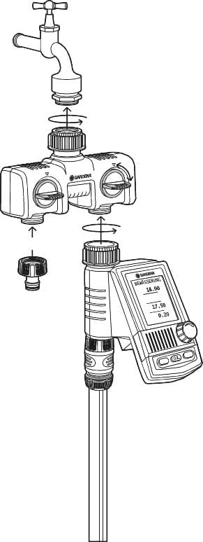 Il distributore a 2 vie GARDENA rende possibile collegare simultaneamente due accessori al rubinetto. Le uscite sono regolabili. È possibile collegare due computer per irrigazione GARDENA al distributore. Il distributore a 2 vie può essere convertito al Profi-System GARDENA tramite la presa rubinetto Profi-System (art. 2801-20). Il distributore a 2 vie GARDENA è indicato per rubinetti con attacco filettato da 33,3 mm (G 1").