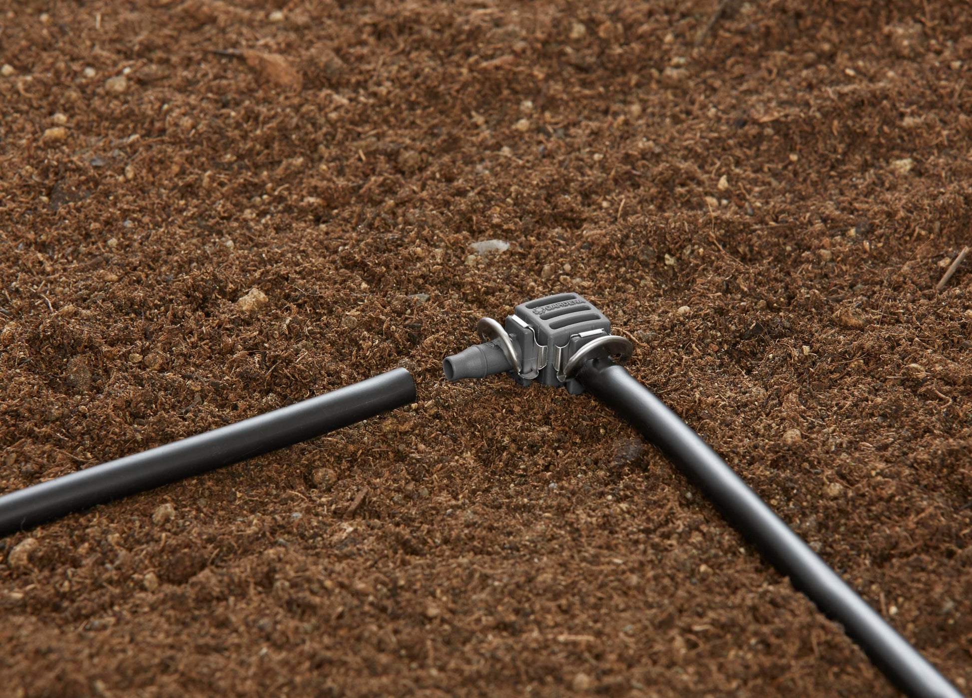 Il raccordo a L GARDENA, parte del Micro-Drip-System GARDENA, è utile per cambiare direzione in maniera precisa al tubo di derivazione. Grazie alla tecnologia di collegamento brevettata "Quick & Easy" l'installazione è particolarmente semplice. Sono in dotazione dieci raccordi a L.