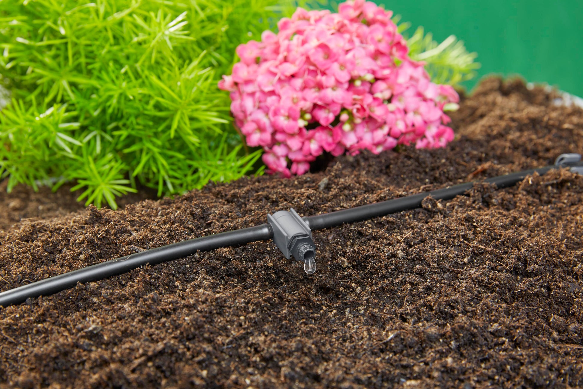 Grazie al gocciolatore in linea GARDENA, parte del Micro-Drip-System GARDENA, è possibile irrigare piante disposte in file, per es. le piante nei balconi, con fabbisogni idrici simili. Il gocciolatore in linea può fornire circa 4 litri d'acqua all'ora. L'ago di pulizia in dotazione è utile per pulire facilmente un gocciolatore sporco.