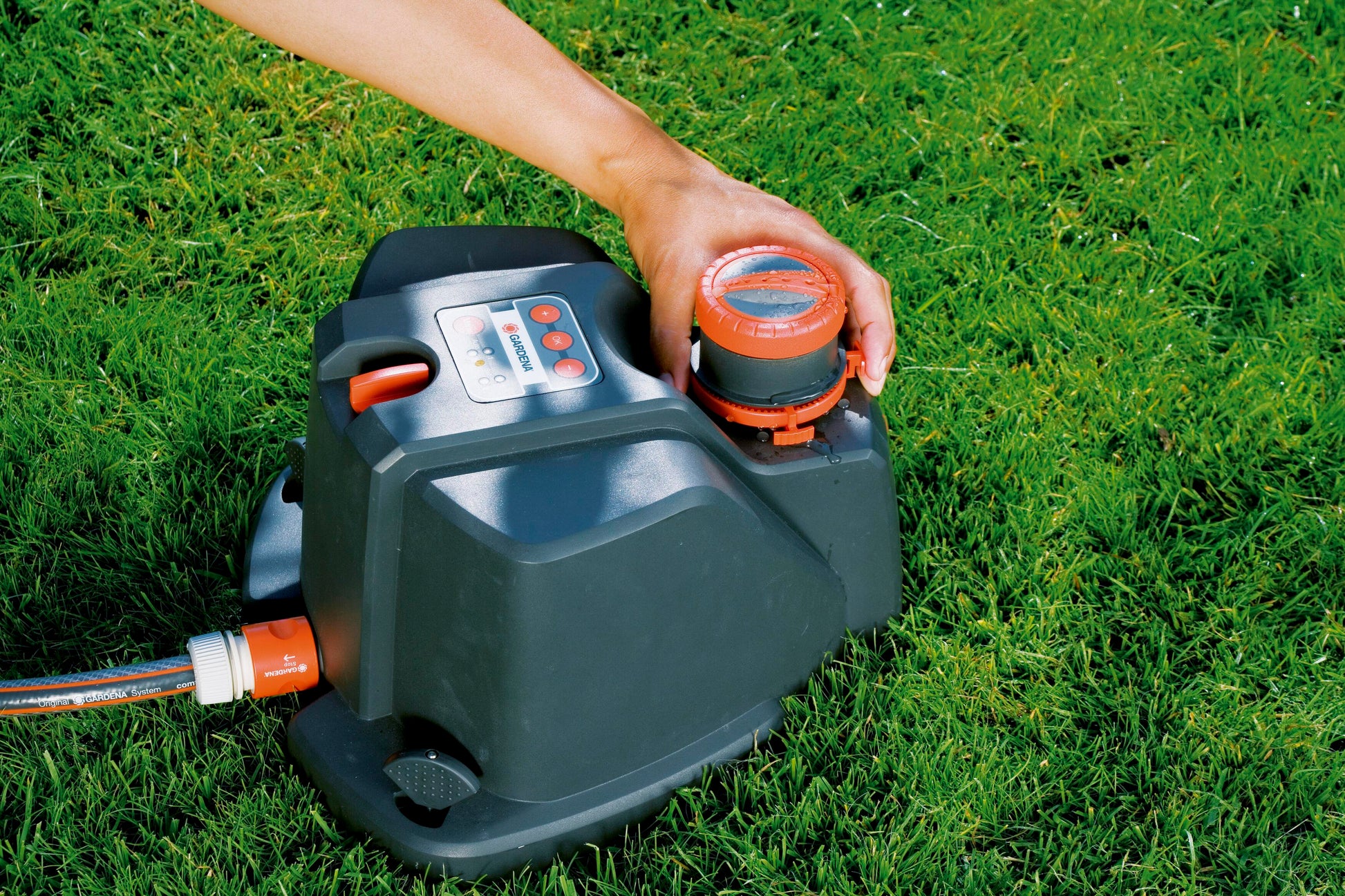 L'innovativo irrigatore per superfici irregolari AquaContour automatic Comfort GARDENA è il pratico irrigatore per irrigare in modo personalizzato giardini di qualsiasi forma con una superficie fino a 350 m². Grazie alle varie possibilità di programmazione della gittata può raggiungere facilmente qualsiasi angolo del giardino. Questo irrigatore per superfici irregolari è particolarmente semplice da programmare; è possibile programmare e memorizzare senza problemi due diverse aree da irrigare, per es. il giardino di fronte alla casa e quello sul retro. A seconda del programma è possibile memorizzare fino a 50 punti chiave del perimetro del giardino. L'irrigatore per superfici irregolari ha un quadro comandi in membrana resistente allo sporco con chiare indicazioni di funzionamento. L'irrigatore può essere programmato in modo semplice. Gli ugelli in morbido materiale plastico sulla testina garantiscono un'irrigazione uniforme. Il settore di irrigazione può essere selezionato a seconda delle esigenze tra 25° e 360° utilizzando gli anelli di regolazione. La gittata dell'irrigatore per superfici irregolari può essere regolata e raggiunge una distanza tra 2,5 e 9 m con una pressione d'esercizio di 2 bar e una distanza di 10,5 m con una pressione d'esercizio di 4 bar. I due indicatori sono pratici: consentono di posizionare in modo preciso e sicuro l'irrigatore nelle zone programmate per l'irrigazione. L'irrigatore per superfici irregolari è inoltre dotato di due picchetti. Ciò consente di fissare stabilmente l'irrigatore sul prato. L'irrigatore per superfici irregolari AquaContour automatic Comfort GARDENA è utile per l'irrigazione di ogni angolo del giardino.