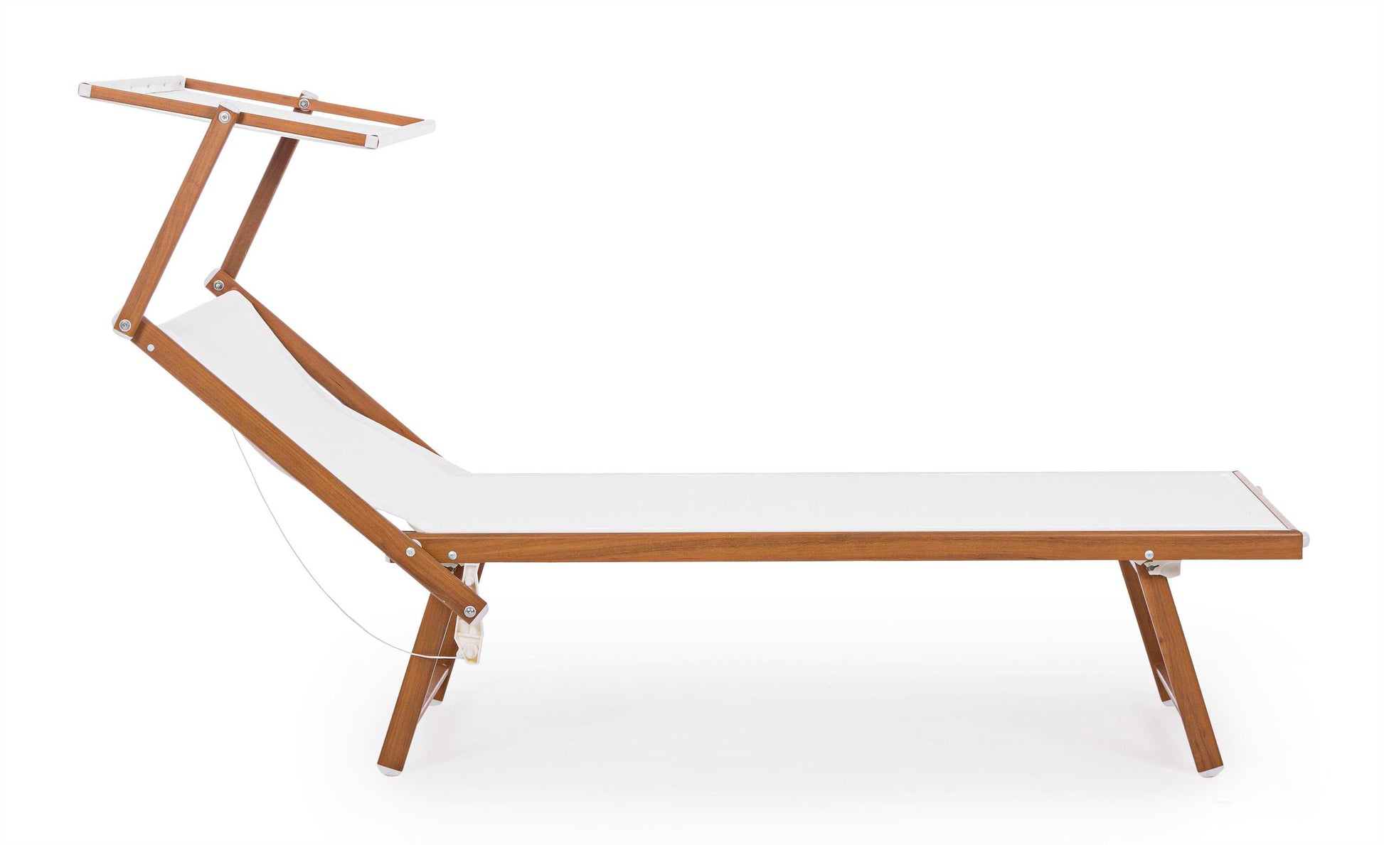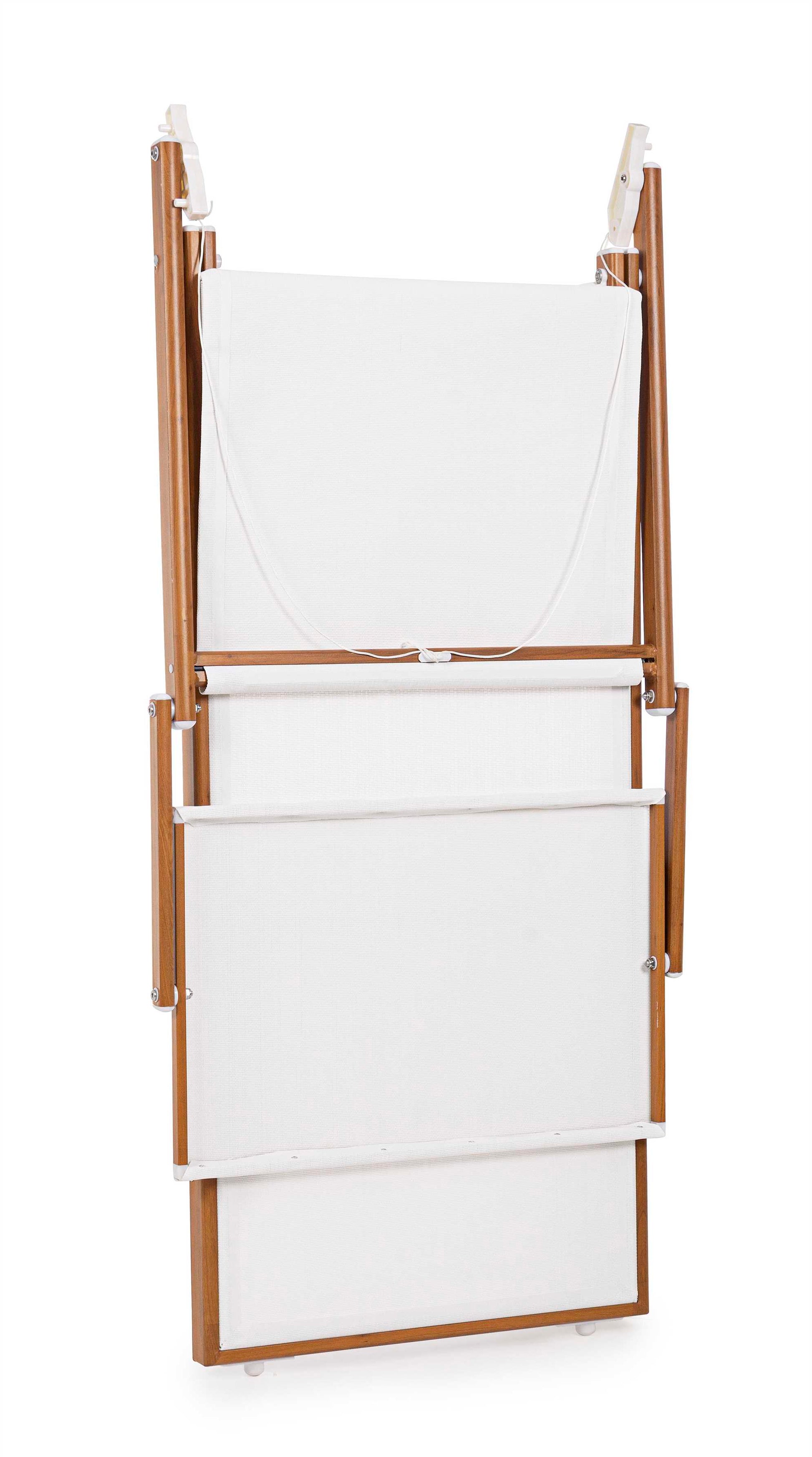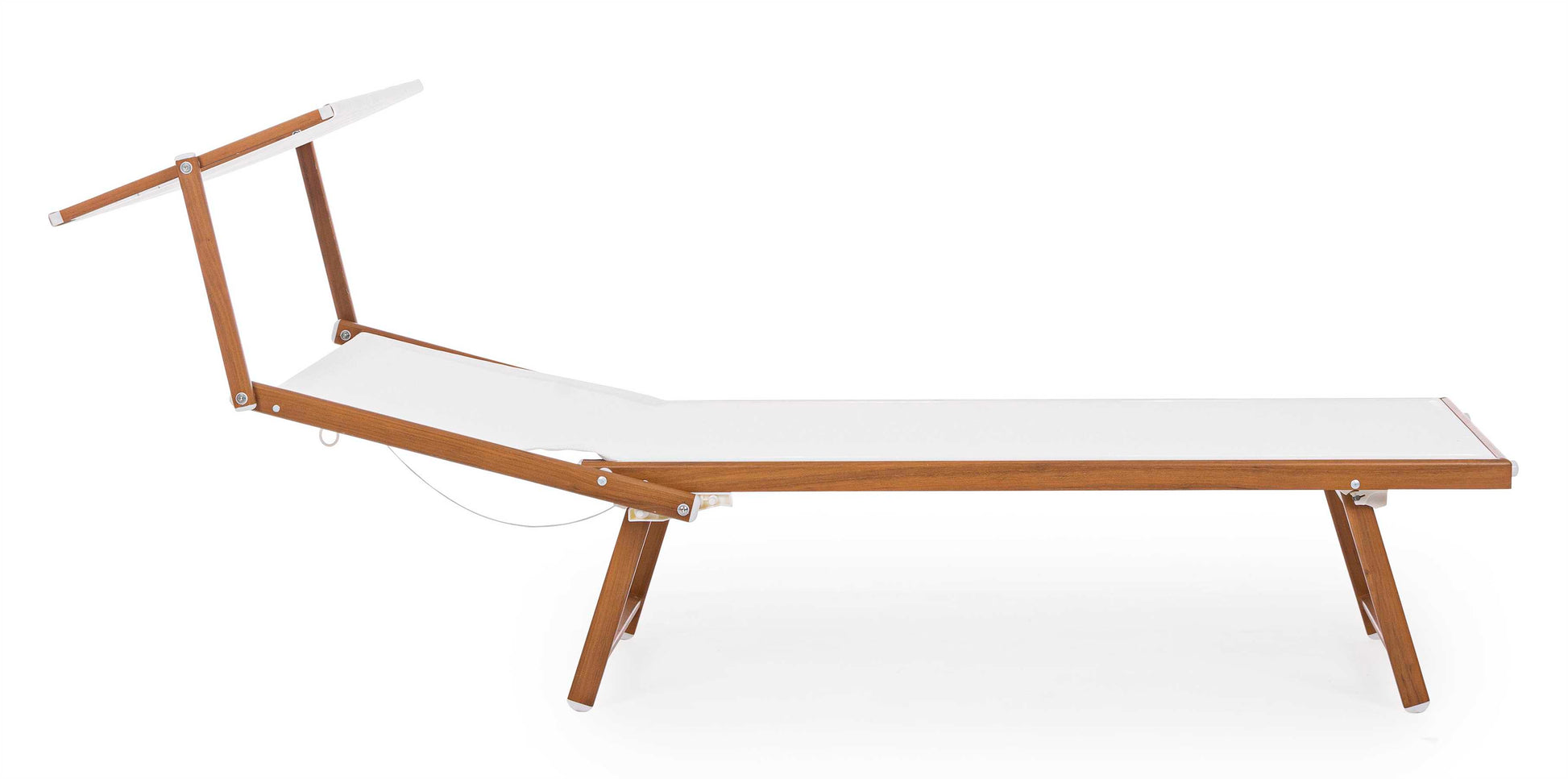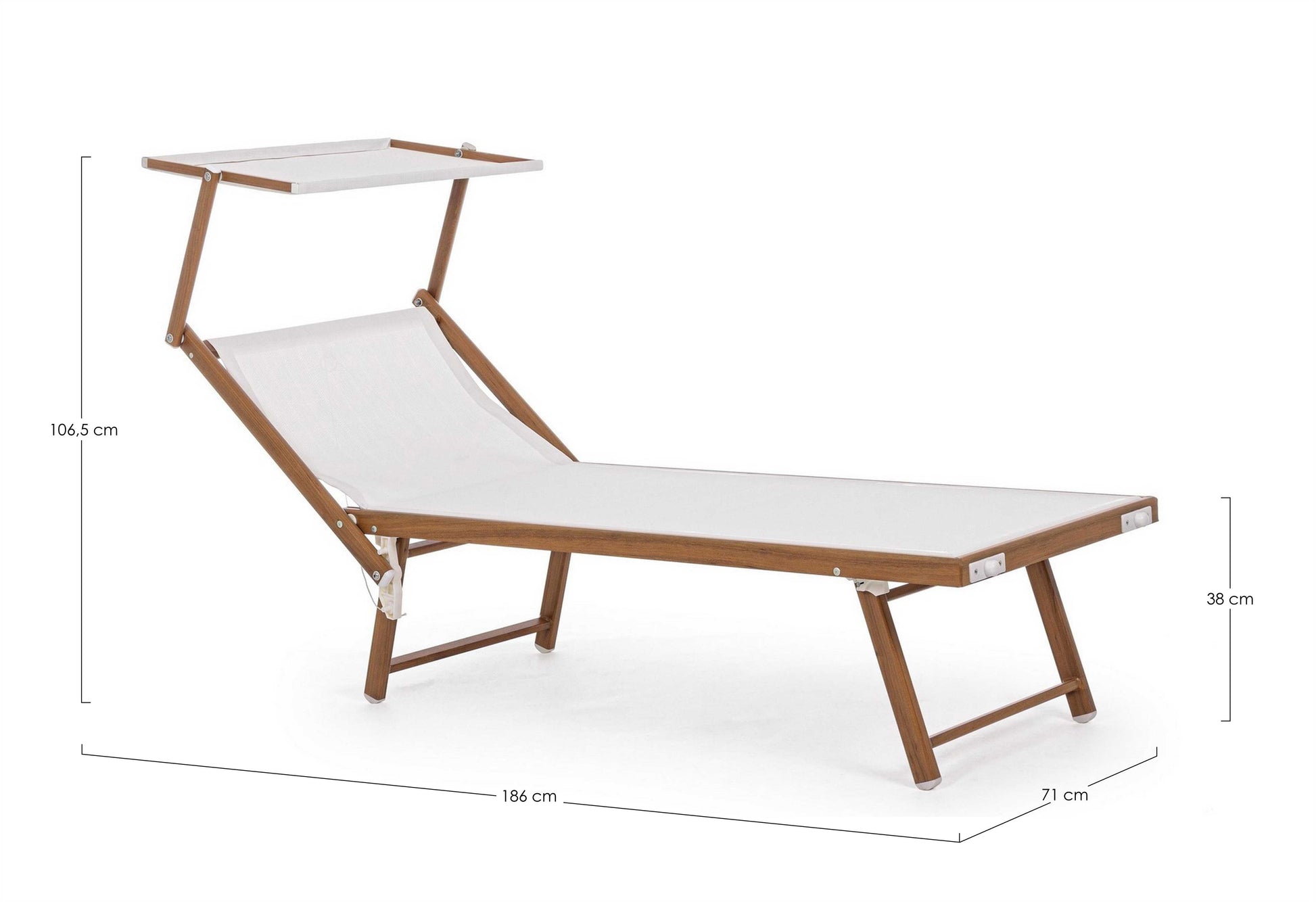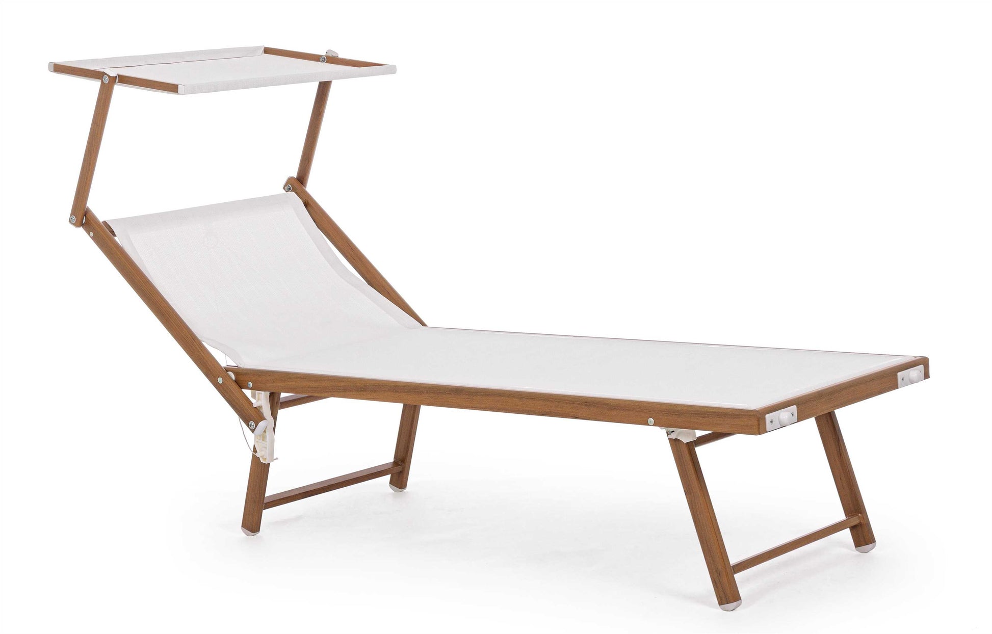 STRUTTURA IN ALLUMINIO VERNICIATO A POLVERE (POLIESTERE), FINITURA EFFETTO LEGNO 43X42X1.1MM/40X23X1.2MM. TESSUTO IN TEXTILENE 2X1 720 GR/M2. DUE POSIZIONI. PIEGHEVOLE.