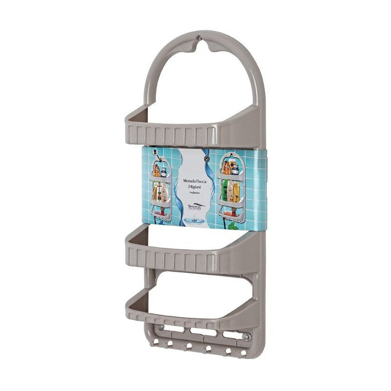Mensola per doccia in plastica a tre ripiani di colore tortora. Linea Ankora