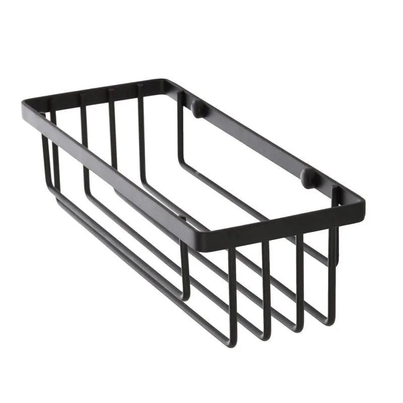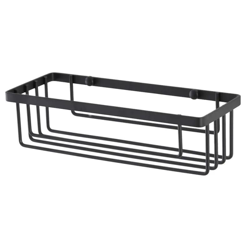Mensola rettangolare a ripiano singolo di colore nero opaco in acciaio. Accessorio da parete con fissaggio al muro tramite viti e tasselli inclusi in confezione.