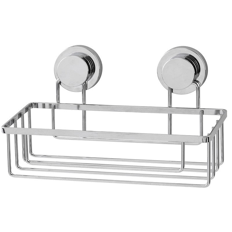 Mensola rettangolare porta oggetti con 1 ripiano per interno doccia in acciaio cromato da fissare a muro con tasselli o biadesivo 3m