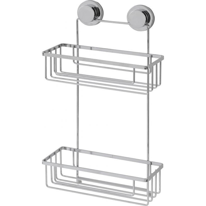 Mensola rettangolare porta oggetti con 2 ripiani per interno doccia in acciaio cromato da fissare a muro con tasselli o biadesivo 3m