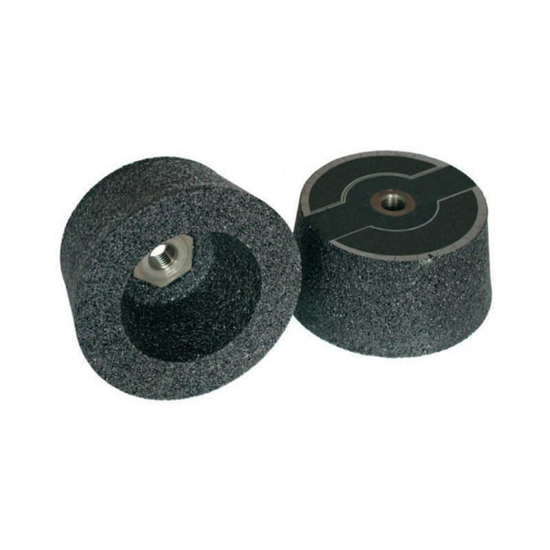 Mole abrasiva al carburo di silicio grana 16 e diametro 110 millimetri. La mole abrasiva ha un azione abrasiva e levigante su superfici come cemento, resina, cotto, ecc.