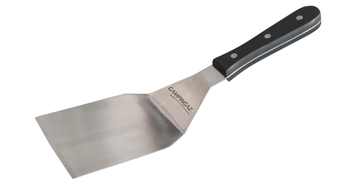 Spatula in acciaio inossidabile lavabile in lavastoviglie con impugnatura comoda, progettata appositamente per mescolare facilmente verdure, carne o frutti di mare. Consente anche una migliore pulizia della superficie della plancha e agevola la rimozione dei residui della griglia.