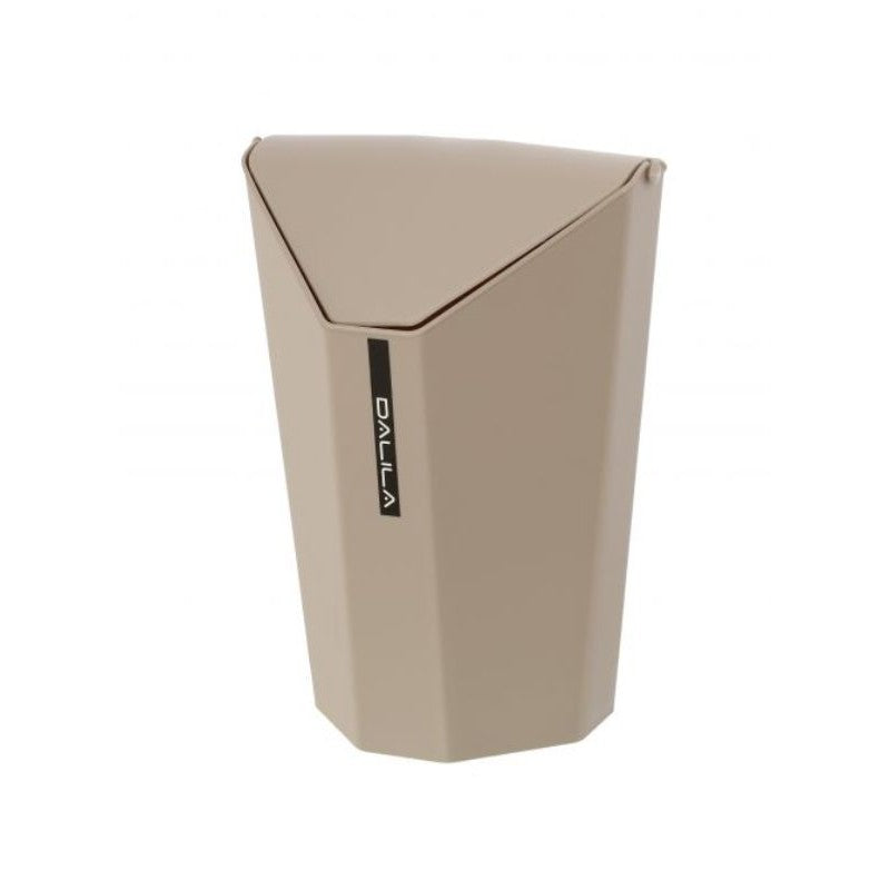 Pattumiera da bagno tipologia da appoggio in plastica di colore tortora ha una forma moderna e accattivante.