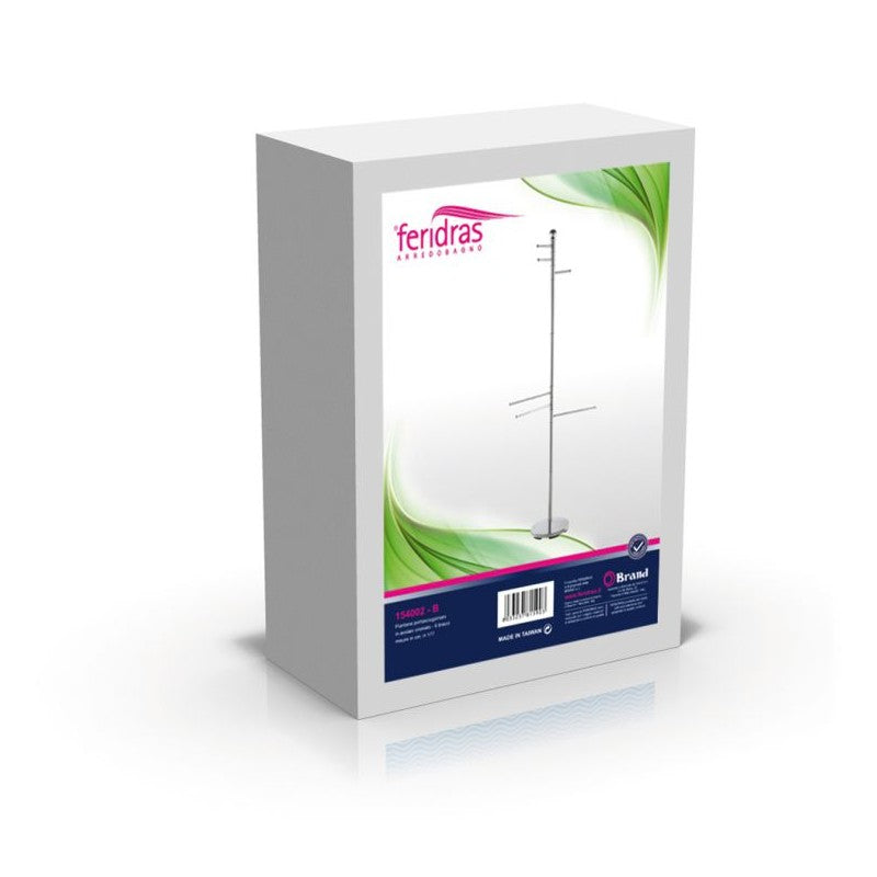 Piantana alta da bagno serie d'appoggio in acciaio cromato con 6 bracci direzionali utili per sostenere accappatoi e asciugamani.