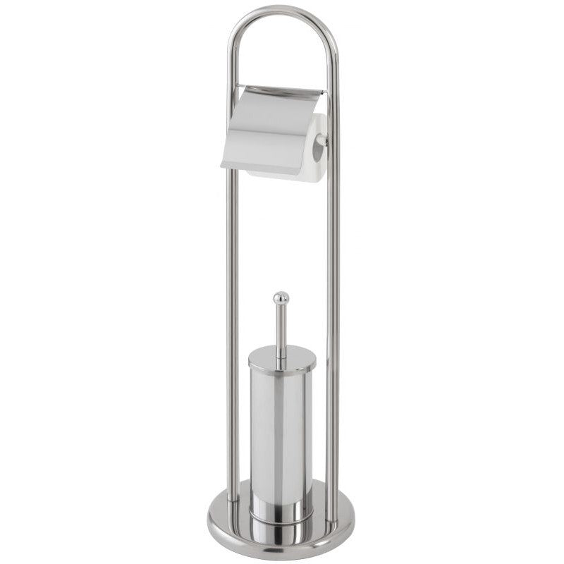 Piantana con portascopino e portarotolo WC realizzata in acciaio di colore cromo lucido.