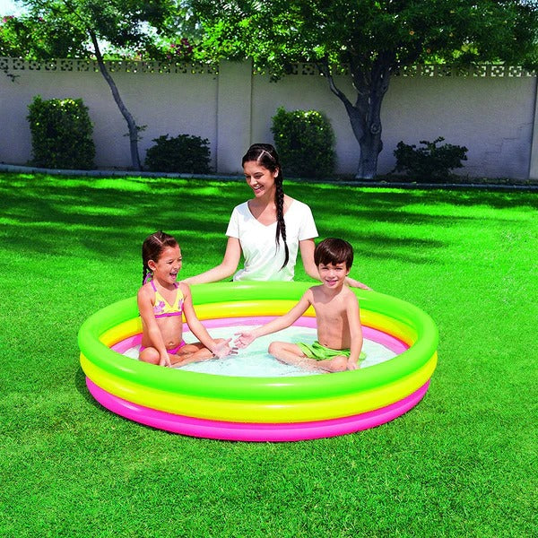 Piscina "Summer" a 3 anelli - Bestway - Dimensioni: 1,52 m x 30 cm - Capacità: 317lt - Fondo morbido gonfiabile - Valvole di sicurezza. - Vinile resistente pretestato. Accessori inclusti: - Kit riparazione