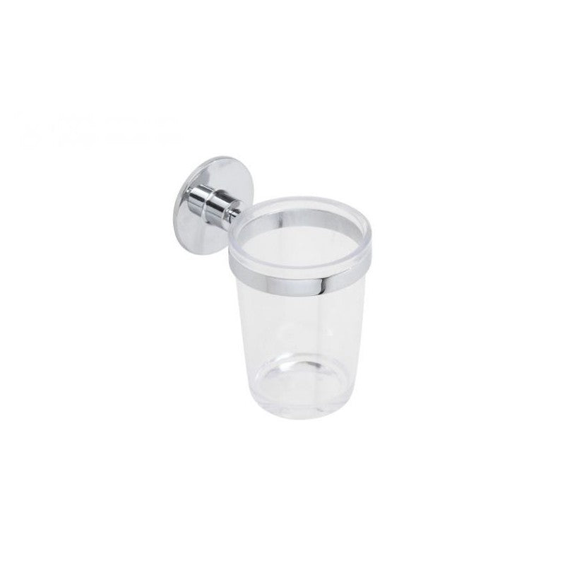 Portaspazzolini in Acciaio con bicchiere ABS acrilico Linea Idea con doppia modalita di fissaggio Adesivo Viti