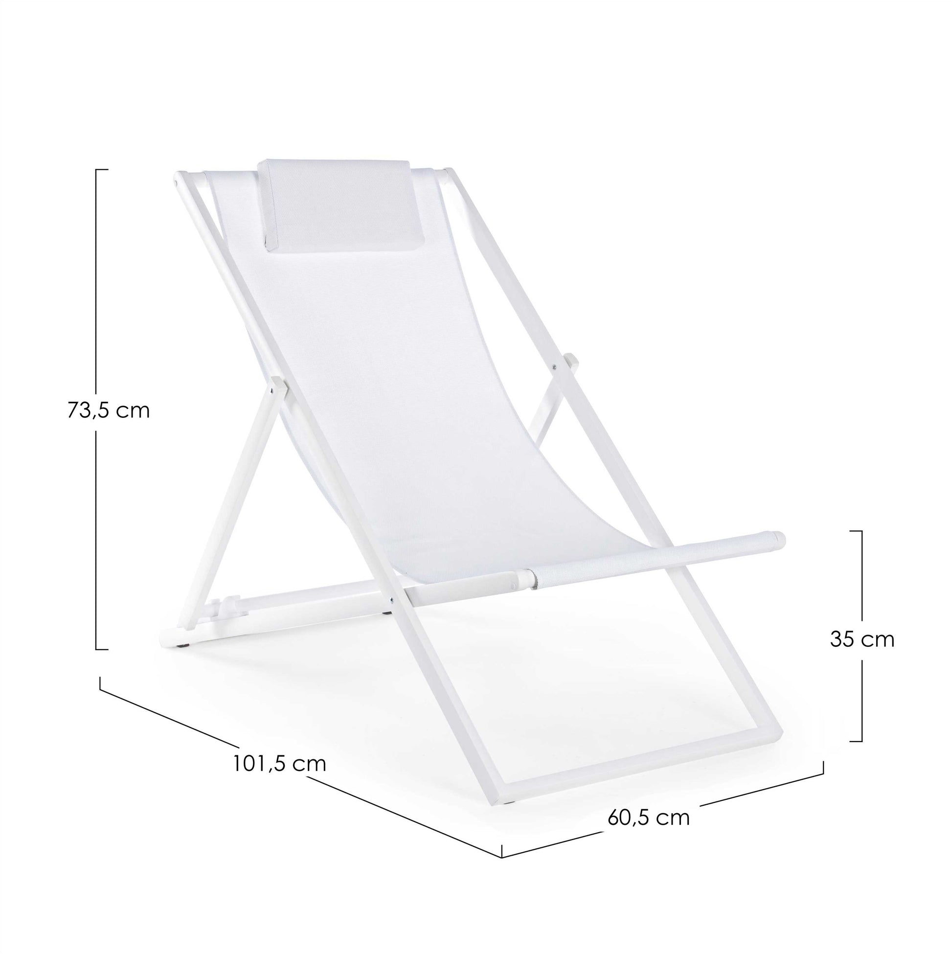 STRUTTURA IN ALLUMINIO, VERNICIATO A POLVERE (POLIESTERE). SEDUTA E SCHIENALE IN TEXTILENE 2X1 (610G/M2). FERRAMENTA IN ACCIAIO GALVANIZZATO. TRE POSIZIONI.