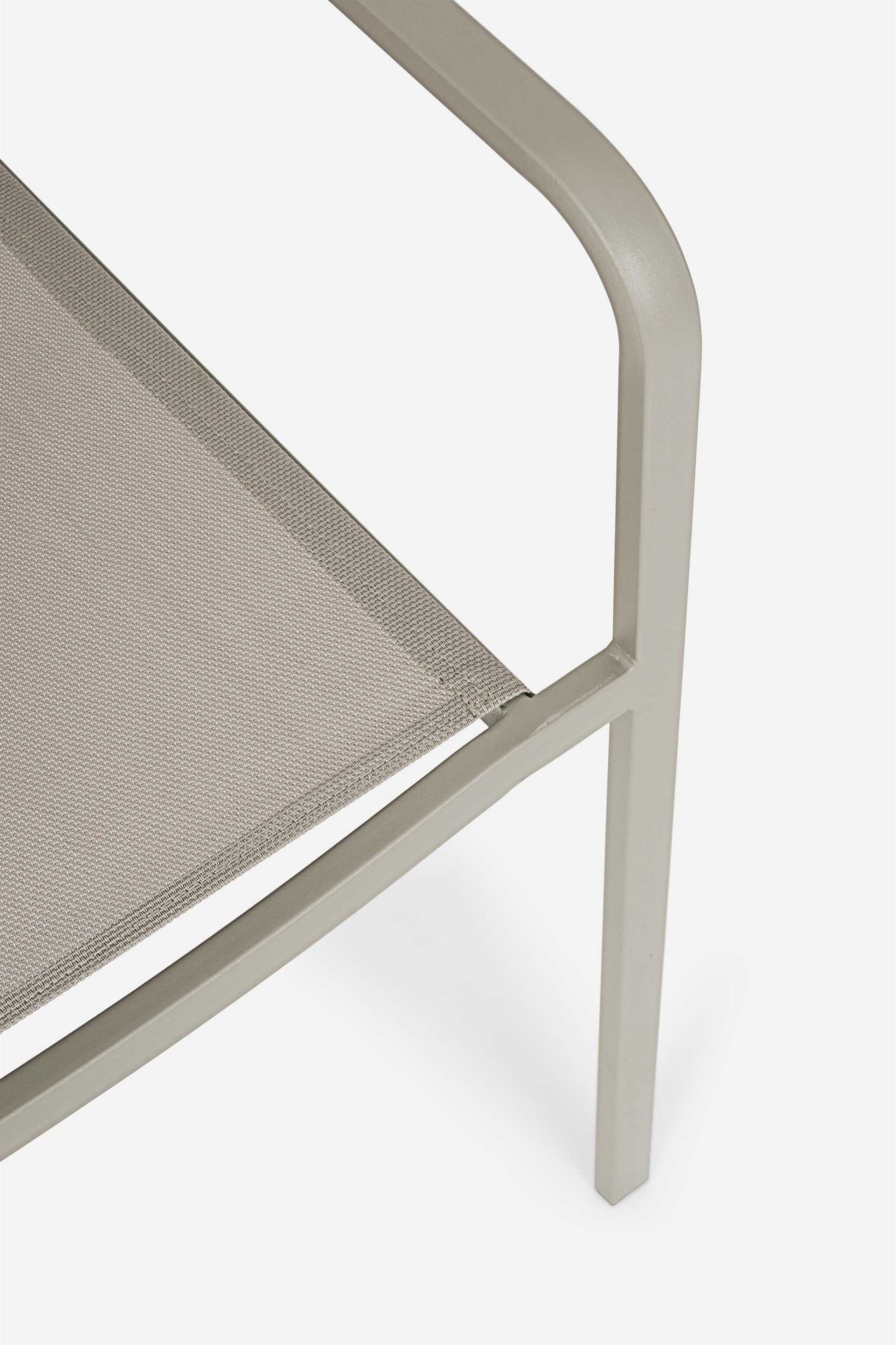 STRUTTURA IN ACCIAIO (TRATTATO PER ESTERNO TRAMITE FOSFATAZIONE) VERNICIATO A POLVERE (POLIESTERE), SEDUTA E SCHIENALE IN TEXTILENE 2X1. IMPILABILE. IMBALLO SENZA CARTONE.