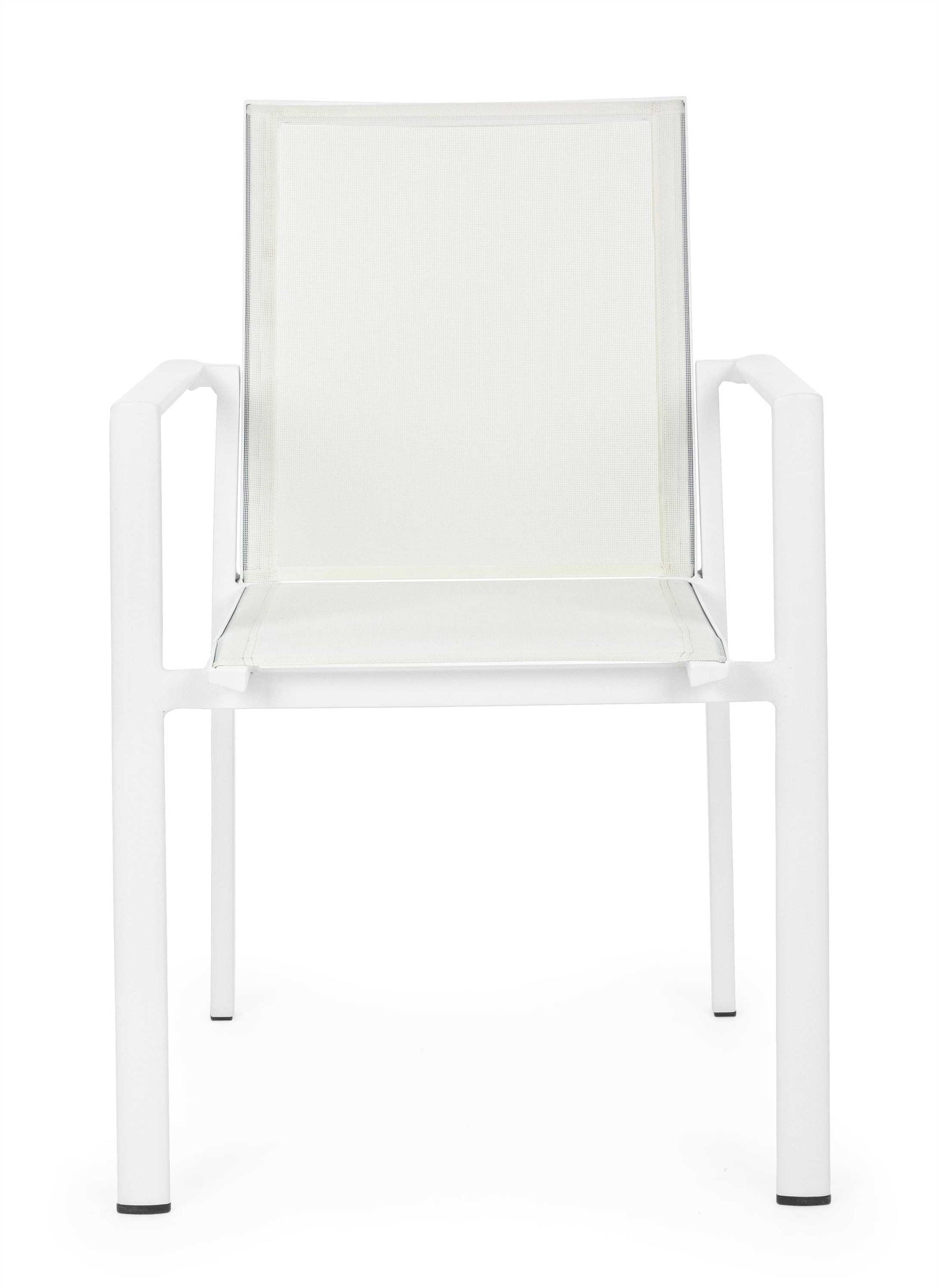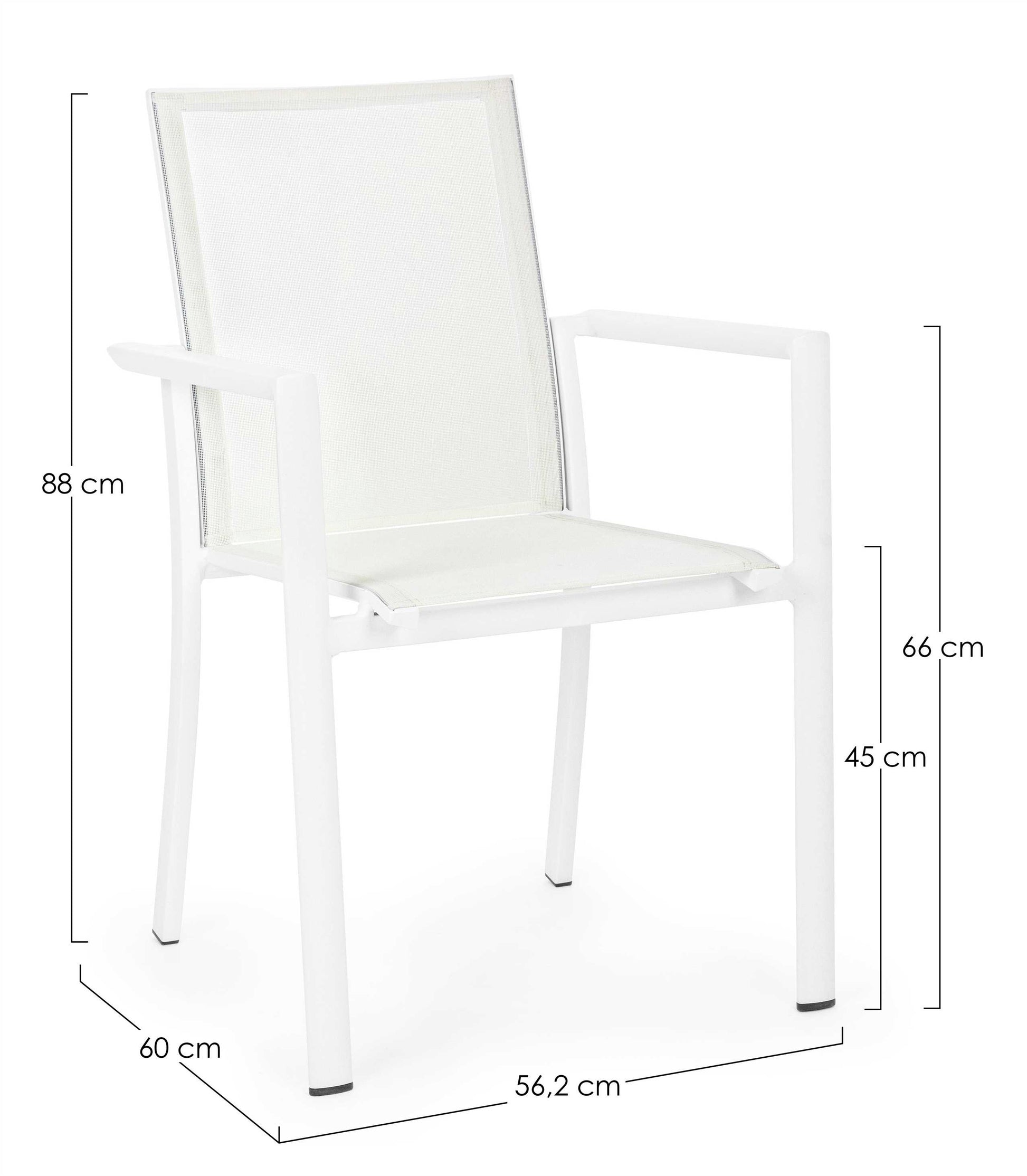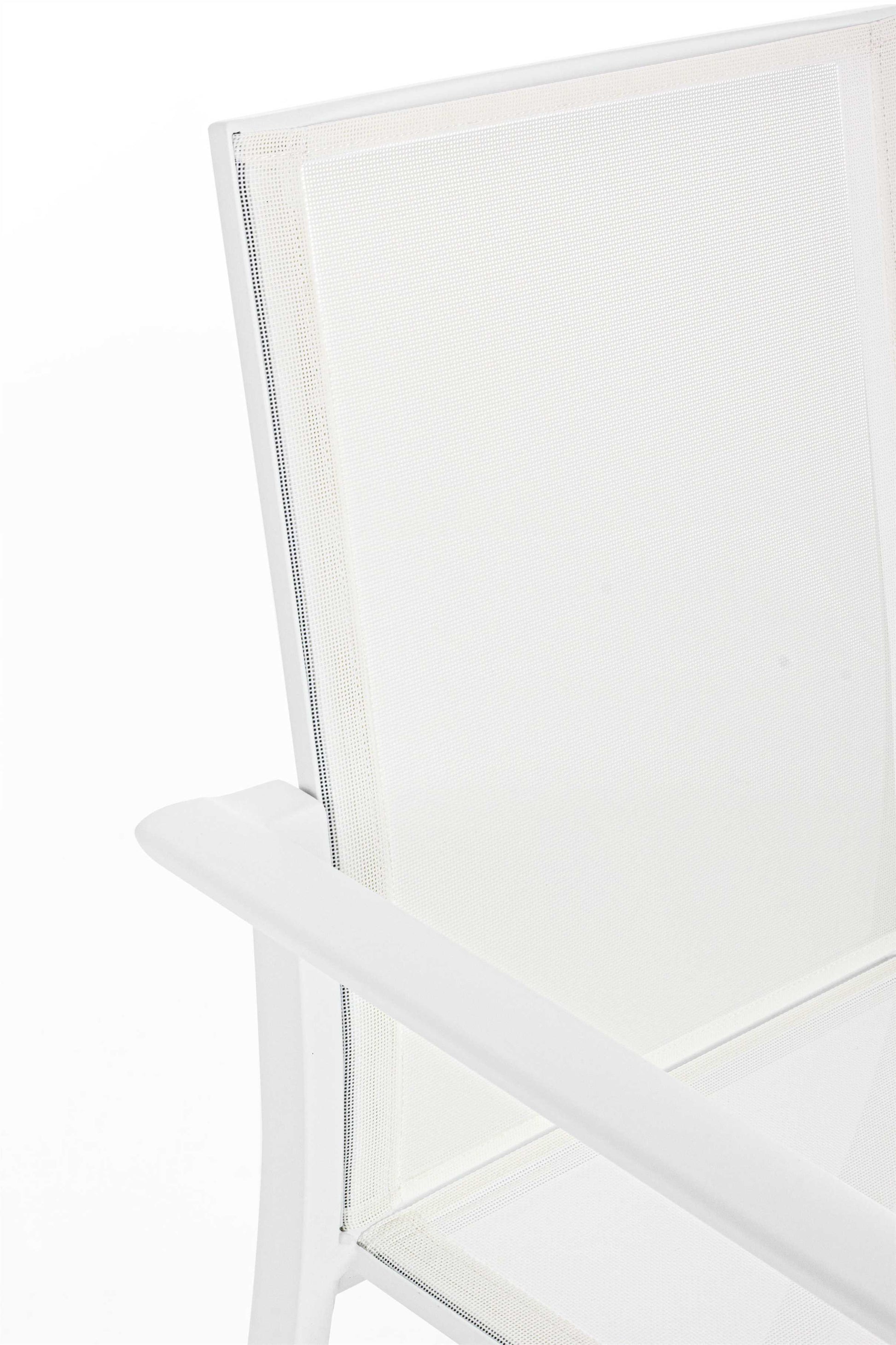STRUTTURA IN ALLUMINIO, VERNICIATO A POLVERE (POLIESTERE). SEDUTA E SCHIENALE IN TEXTILENE 1X1. IMPILABILE. IMBALLO SENZA CARTONE.