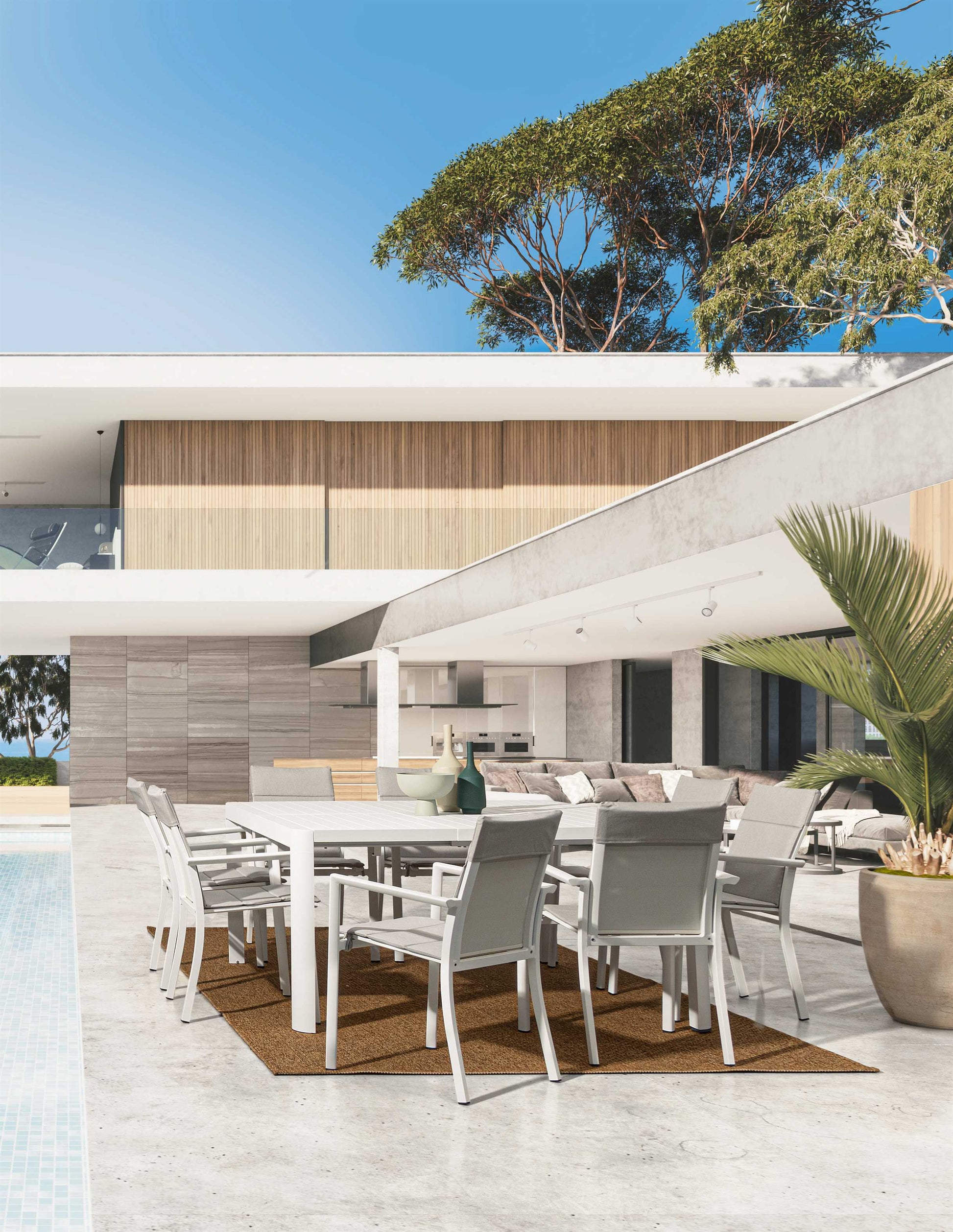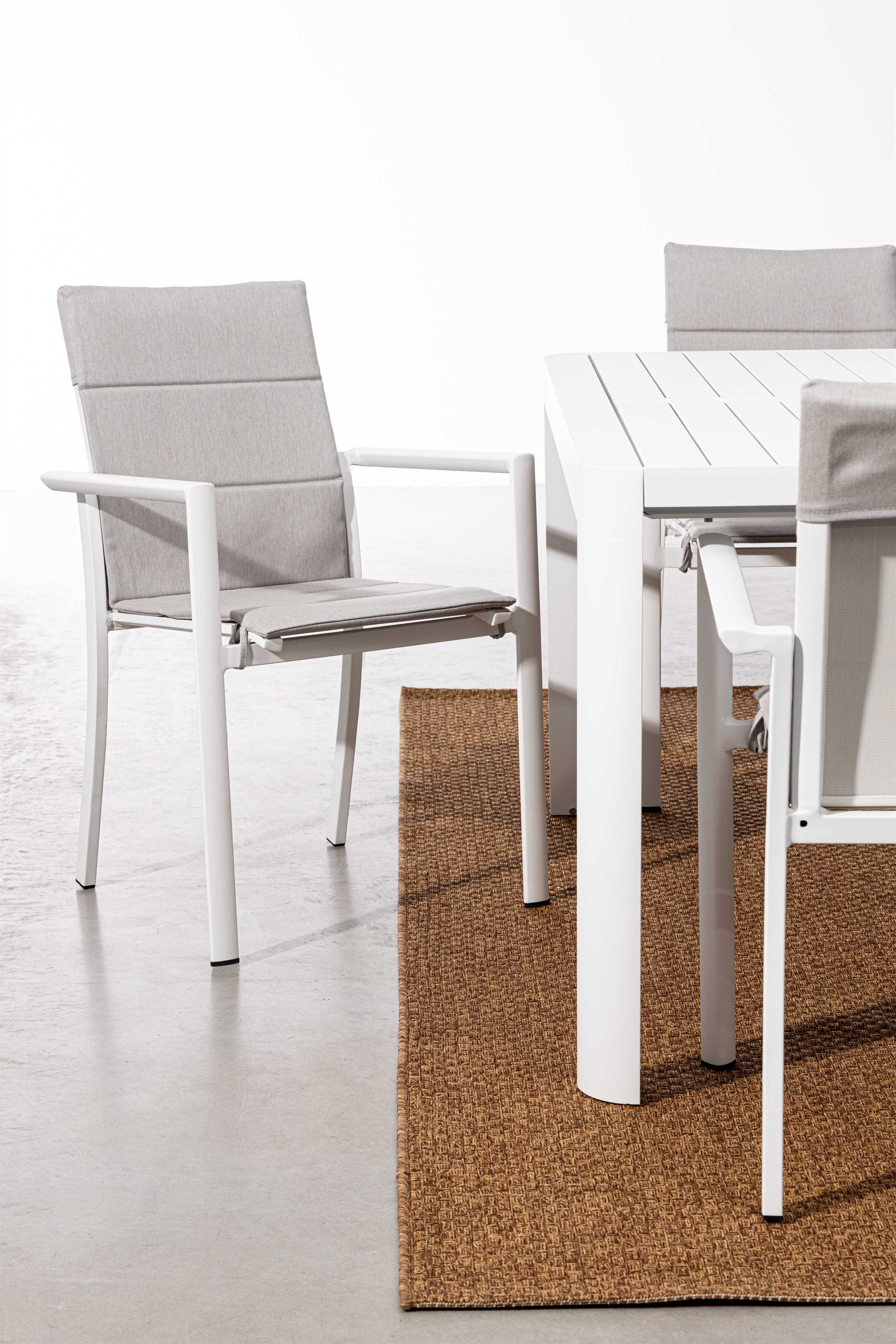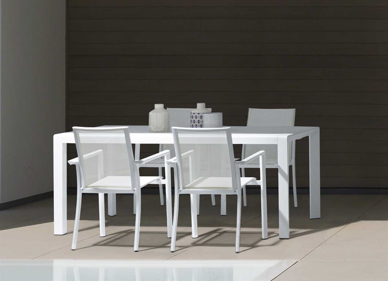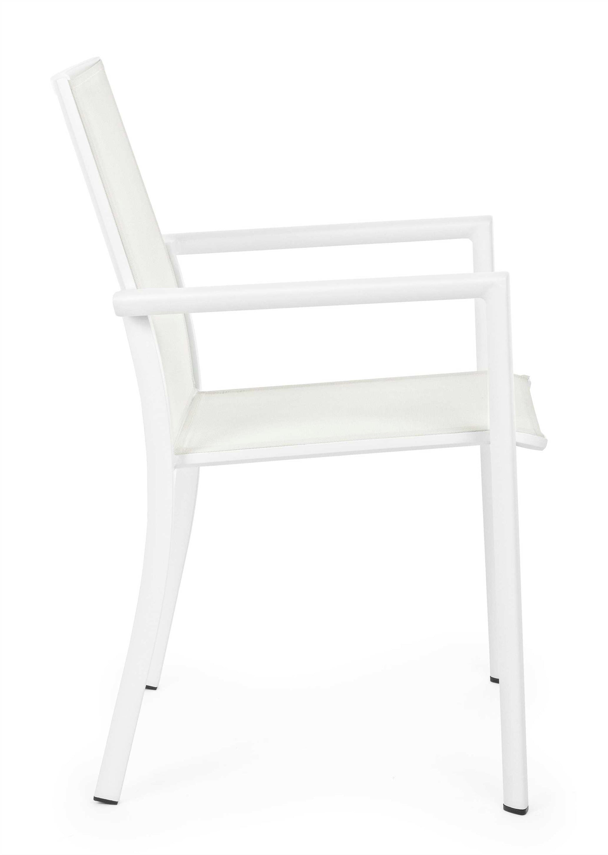 STRUTTURA IN ALLUMINIO, VERNICIATO A POLVERE (POLIESTERE). SEDUTA E SCHIENALE IN TEXTILENE 1X1. IMPILABILE. IMBALLO SENZA CARTONE.