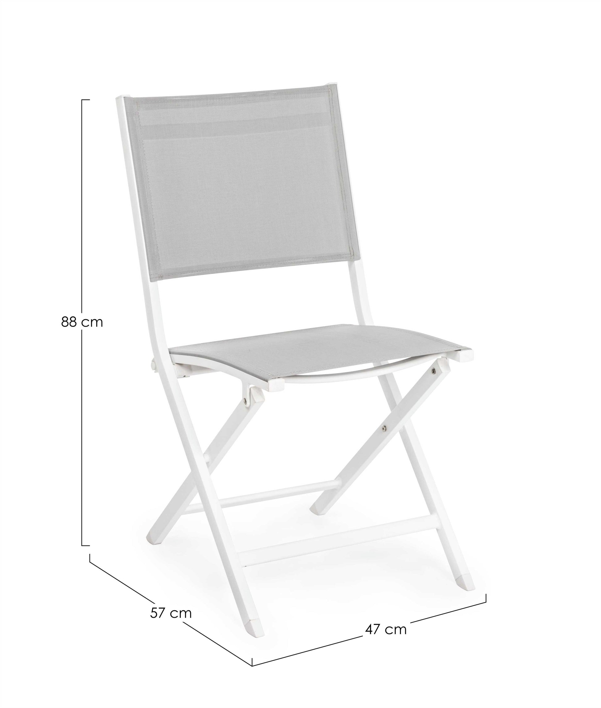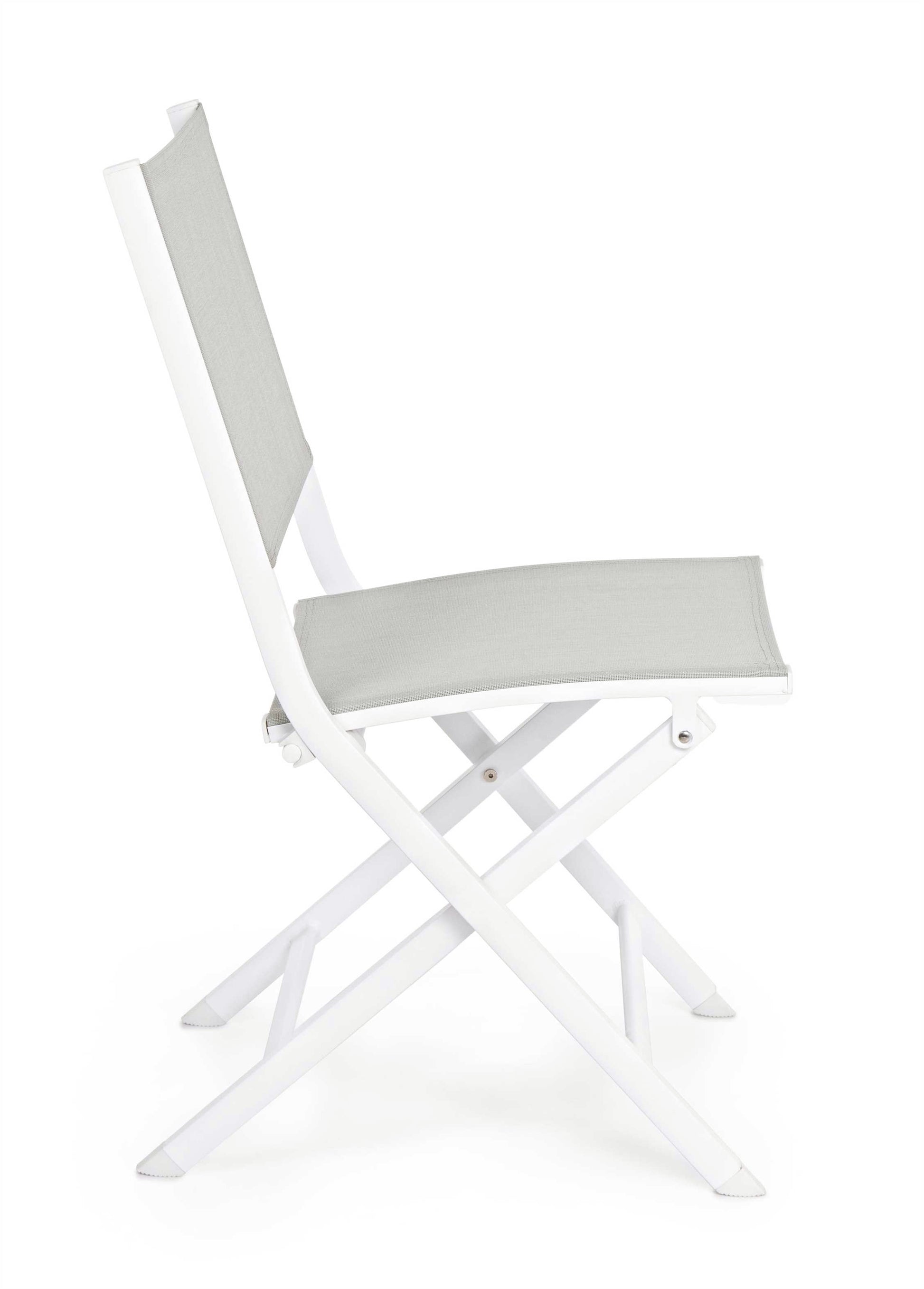 STRUTTURA IN ALLUMINIO, VERNICIATO A POLVERE (POLIESTERE). SEDUTA E SCHIENALE IN TEXTILENE. PIEGHEVOLE.