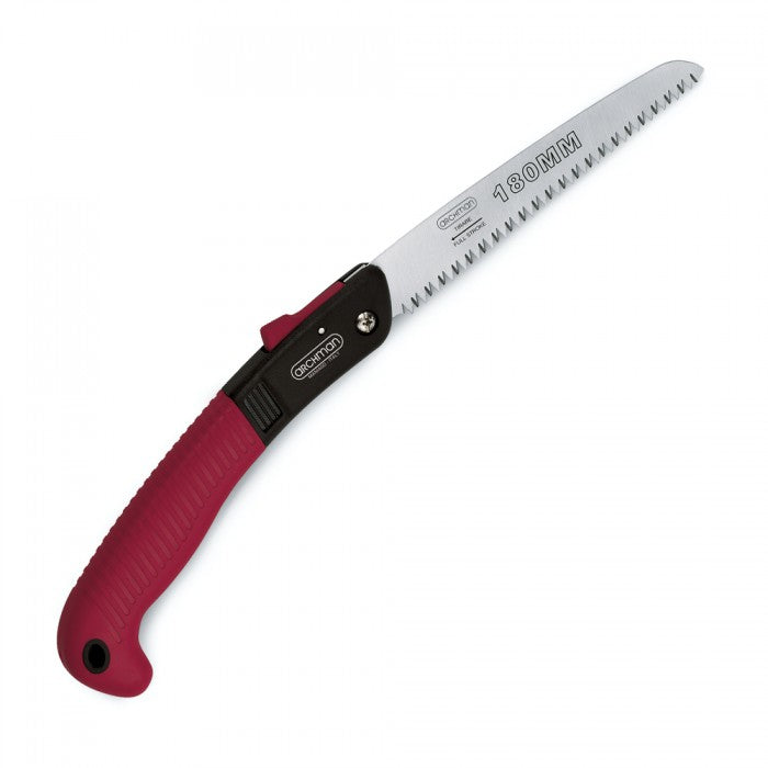 Sega da potatura chiudibile con lama cromata temperata HRC 50-52 dritta intercambiabile e pulsante autoblocco.