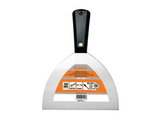 Spatola americana 100mm. Spatola con lama in acciaio temprato con manico in materiale plastico fissato alla lama tramite rivetto