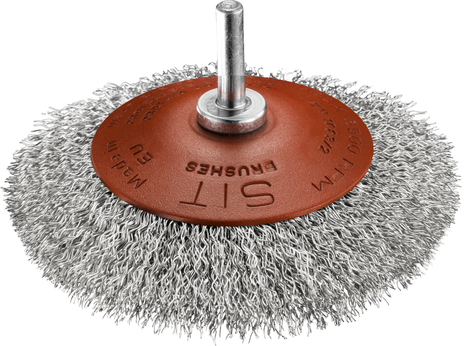 Spazzola conica con codulo mm 6 Fili acciaio ondulati mm 0,35 Diametro mm 95 Altezza fili mm 20 Adatta per lavori su superfici irregolari