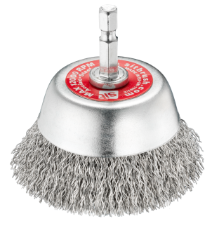 Spazzole metalliche a tazza 656 T60 HEX con attacco rapido in acciaio ondulato 0,35 - max rpm 6500 - diametro mm.65 - sporgenza mm.24