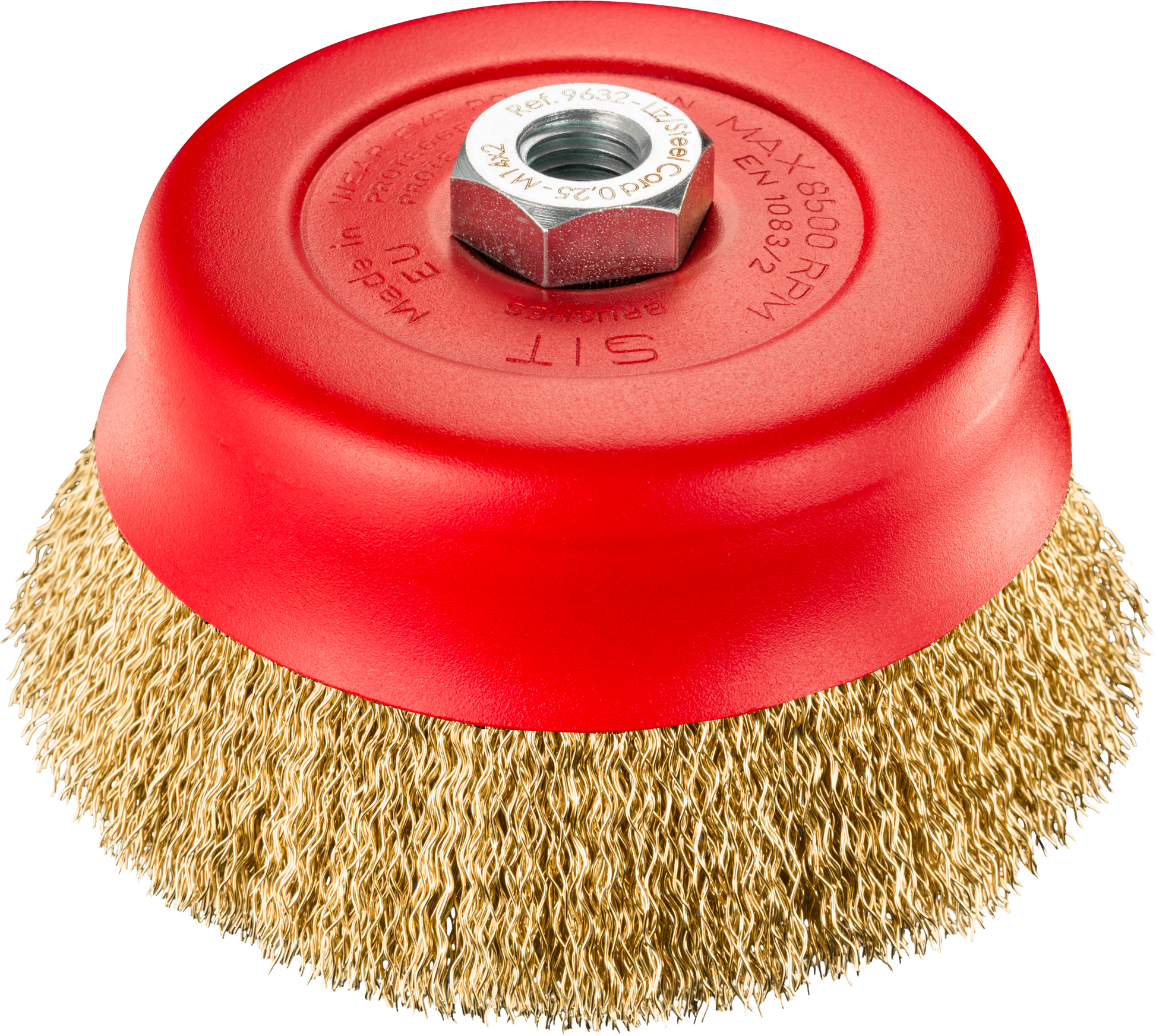 SPAZZOLA IN FILO D'ACCIAIO OTTONATO ONDULATO PER LA PULIZIA DI SUPERFICI. LA VERSIONE TE COMPRENDE SPAZZOLE A TAZZA PIU' LEGGERE.
