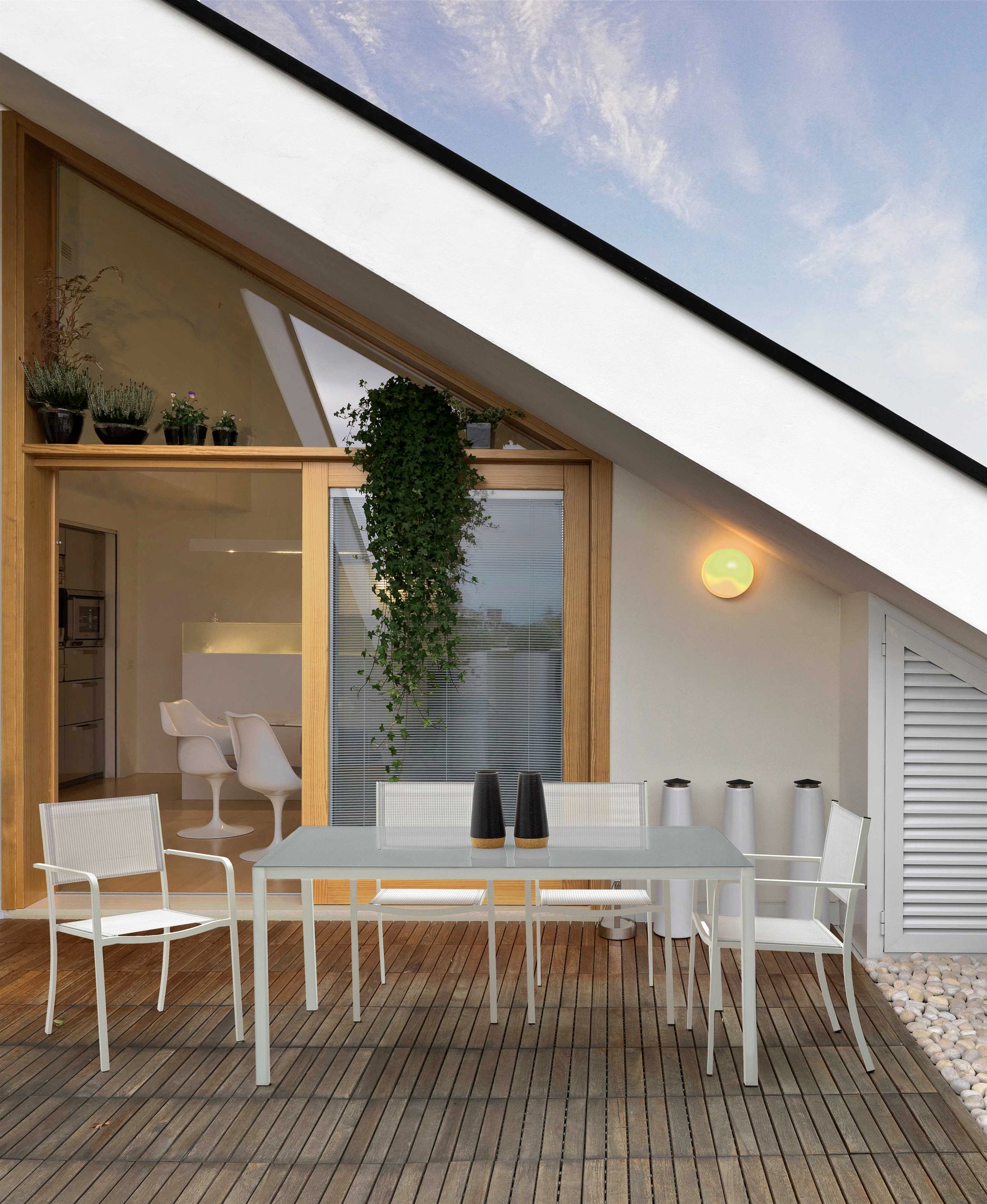 STRUTTURA IN ACCIAIO (TRATTATO PER ESTERNO TRAMITE FOSFATAZIONE) VERNICIATO A POLVERE (POLIESTERE), VETRO TEMPERATO E STAMPATO. VITERIA IN ACCIAIO GALVANIZZATO. GAMBE DA ASSEMBLARE.